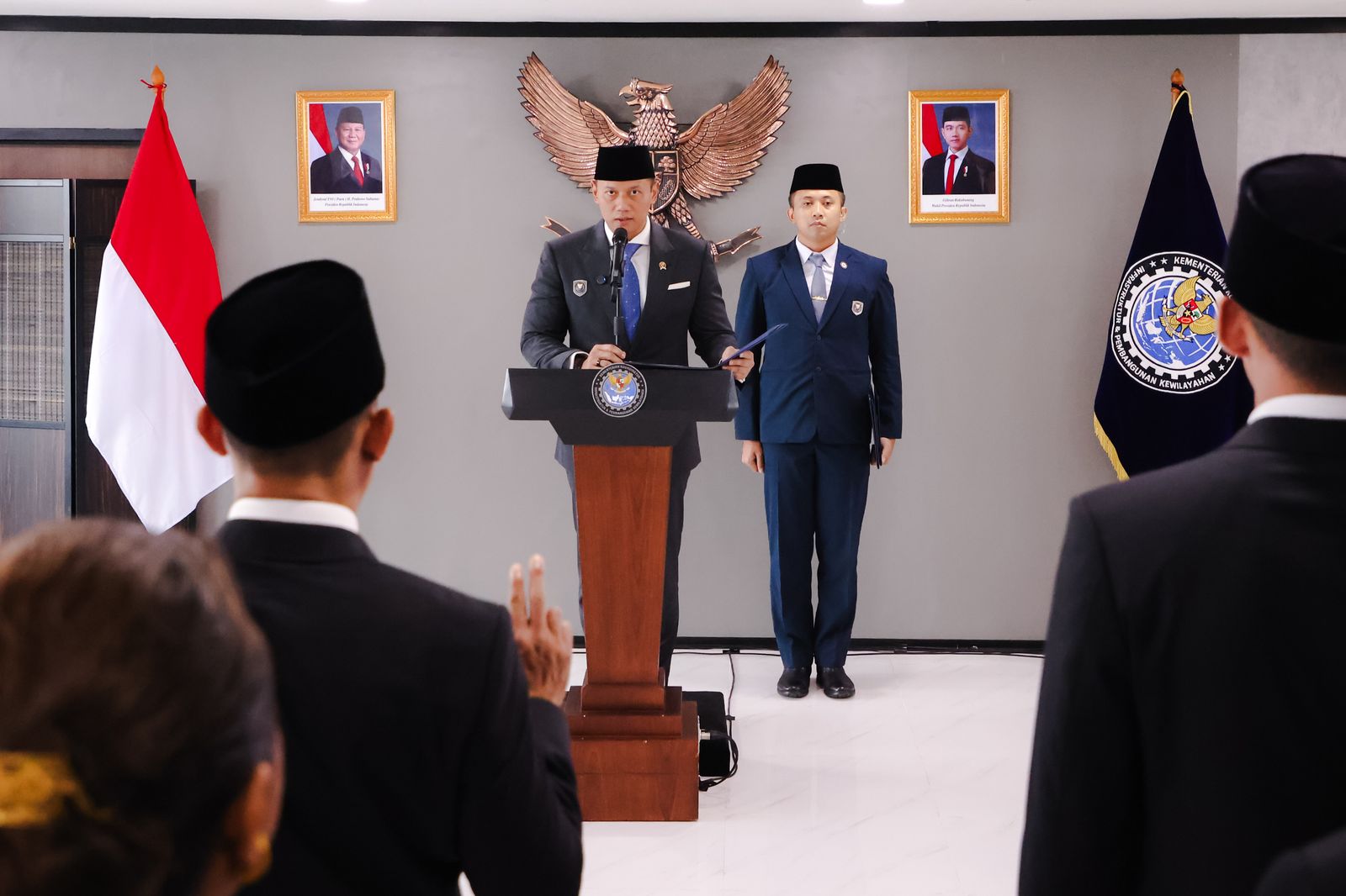 "Para pejabat yang dilantik hari ini akan menjadi garda terdepan dalam mengoordinasikan, mengawasi, serta mengevaluasi jalannya keseluruhan pembangunan infrastruktur dan wilayah di seluruh Indonesia," ujar Menko AHY.