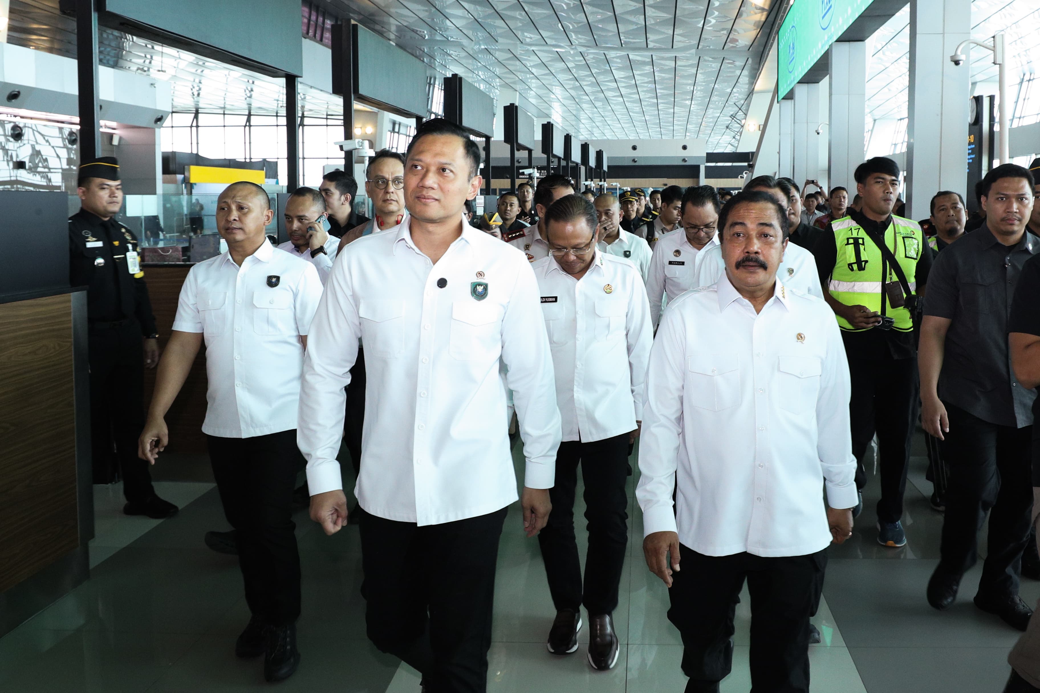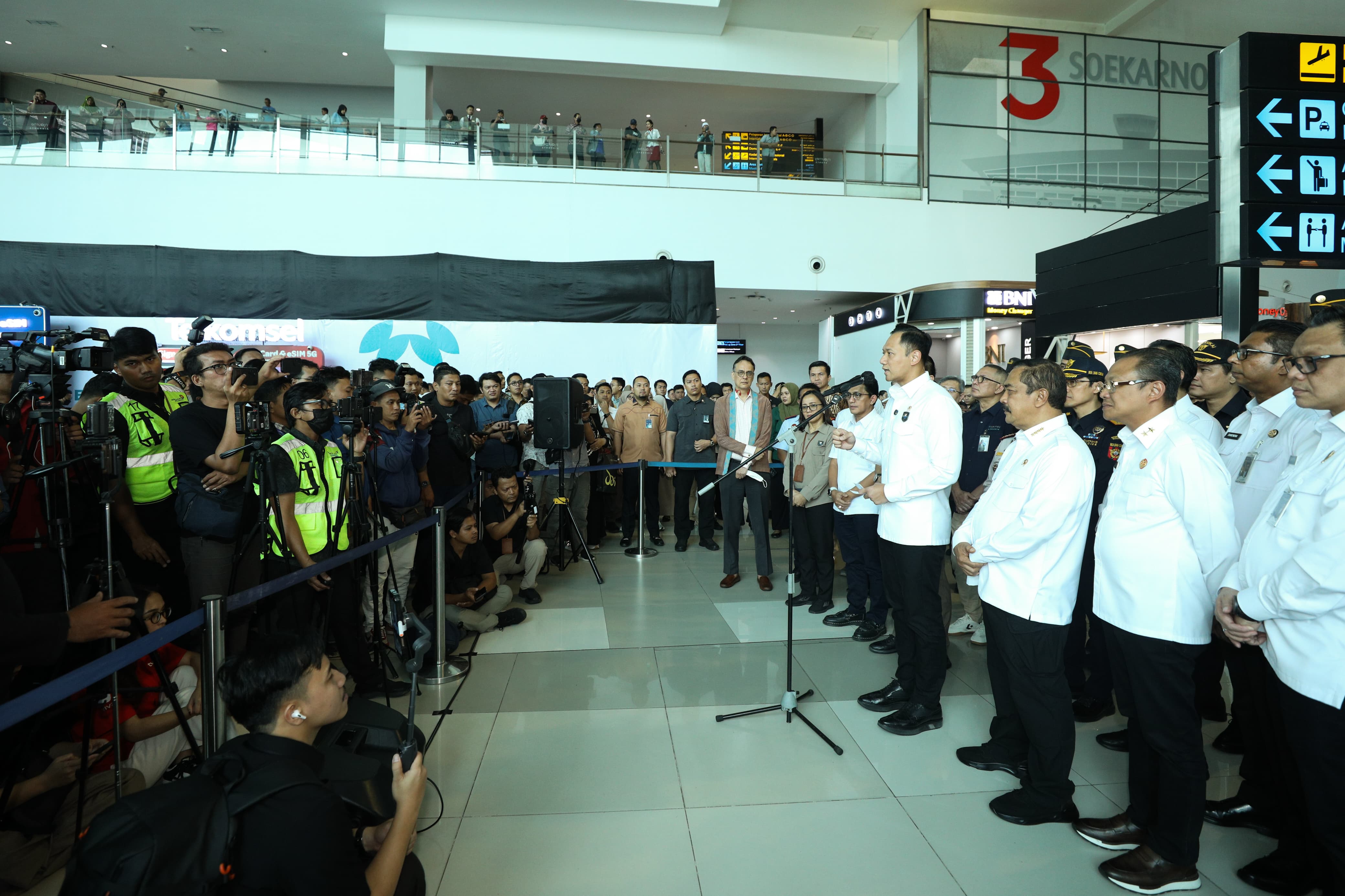 Menteri Koordinator Bidang Infrastruktur dan Pembangunan Kewilayahan, Agus Harimurti Yudhoyono (AHY), meninjau langsung pelaksanaan kick-off uji coba sistem All Indonesia di Bandara Internasional Soekarno–Hatta, Tangerang, pada Kamis (24/7/2025).