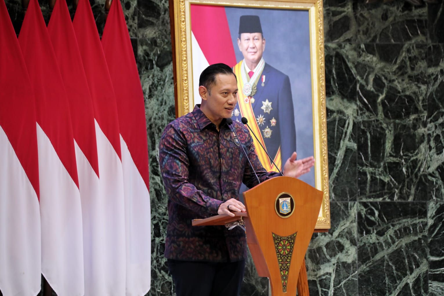 “Sama-sama kita bisa mewujudkan visi-misi Asta Cita Bapak Presiden Prabowo Subianto, yang tadi saya simak dan saya catat, tentunya juga saya dengarkan selama Bapak berkampanye, visi untuk Jakarta ke depan, yaitu Jakarta sebagai kota global yang juga merupakan pusat perekonomian. Pertama, yang berdaya saing, berkelanjutan, dan menyejahterakan seluruh warganya,” imbuh Menko AHY.